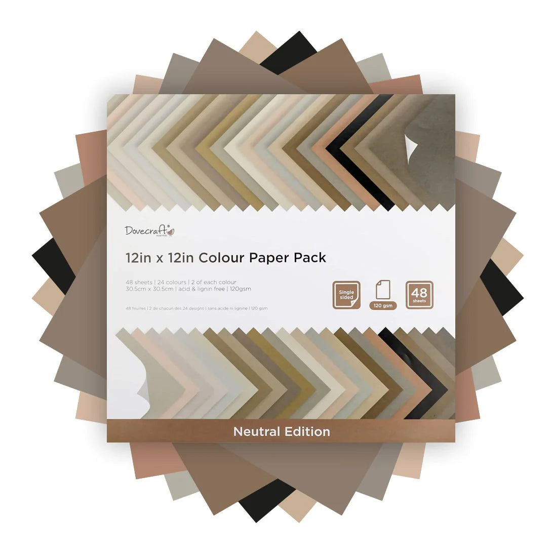 Dovecraft 12in x 12in Coloured Paper Pack | Neutral Edition